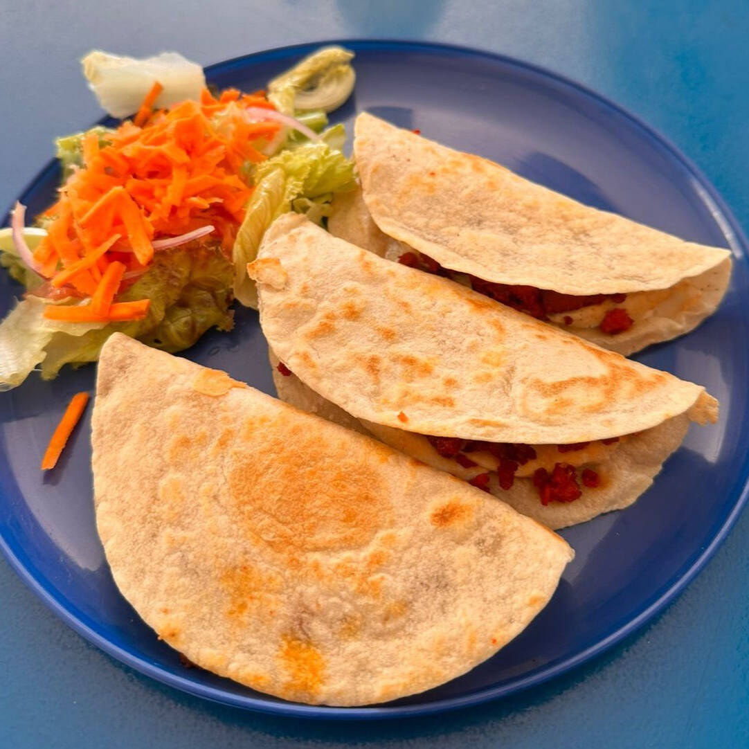 Con tortilla de harina (3pz). Acompañadas de ensalada