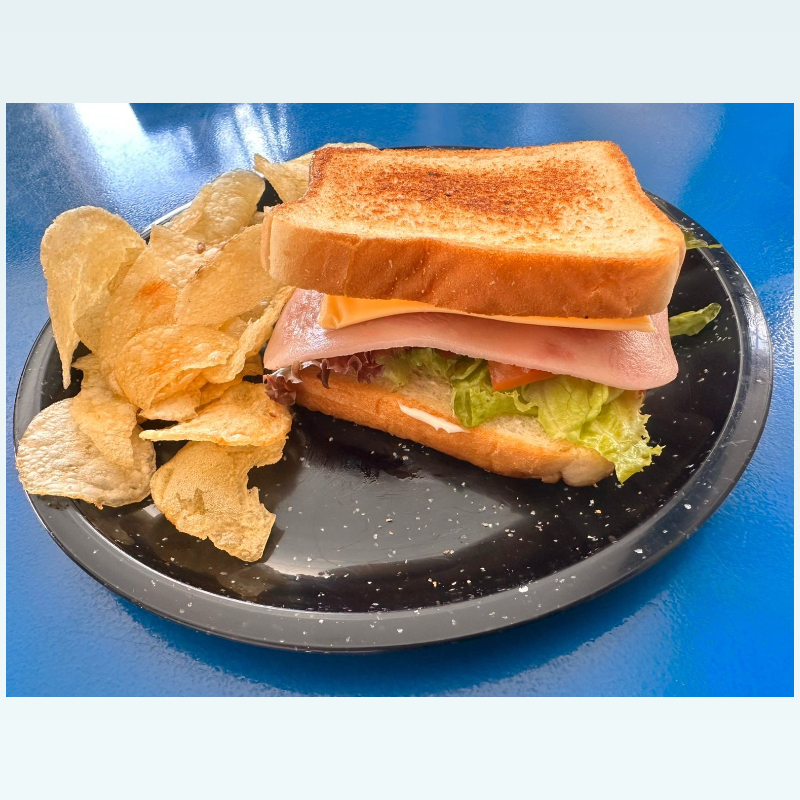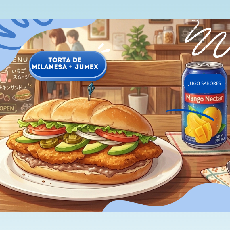Lleva jitomate, lechuga, cebolla, aguacate, queso americano y chile. Acompañado con papas chips