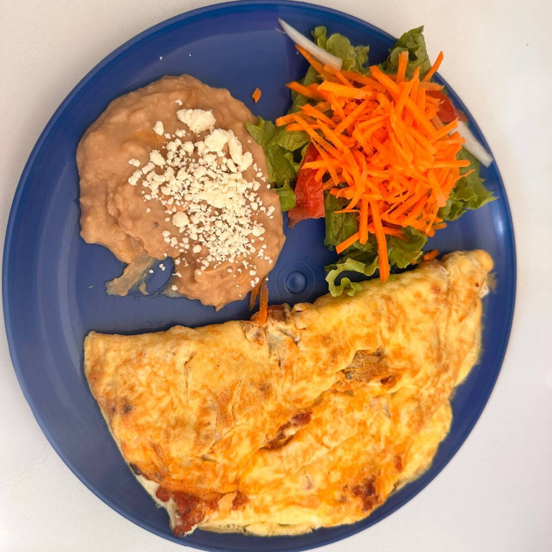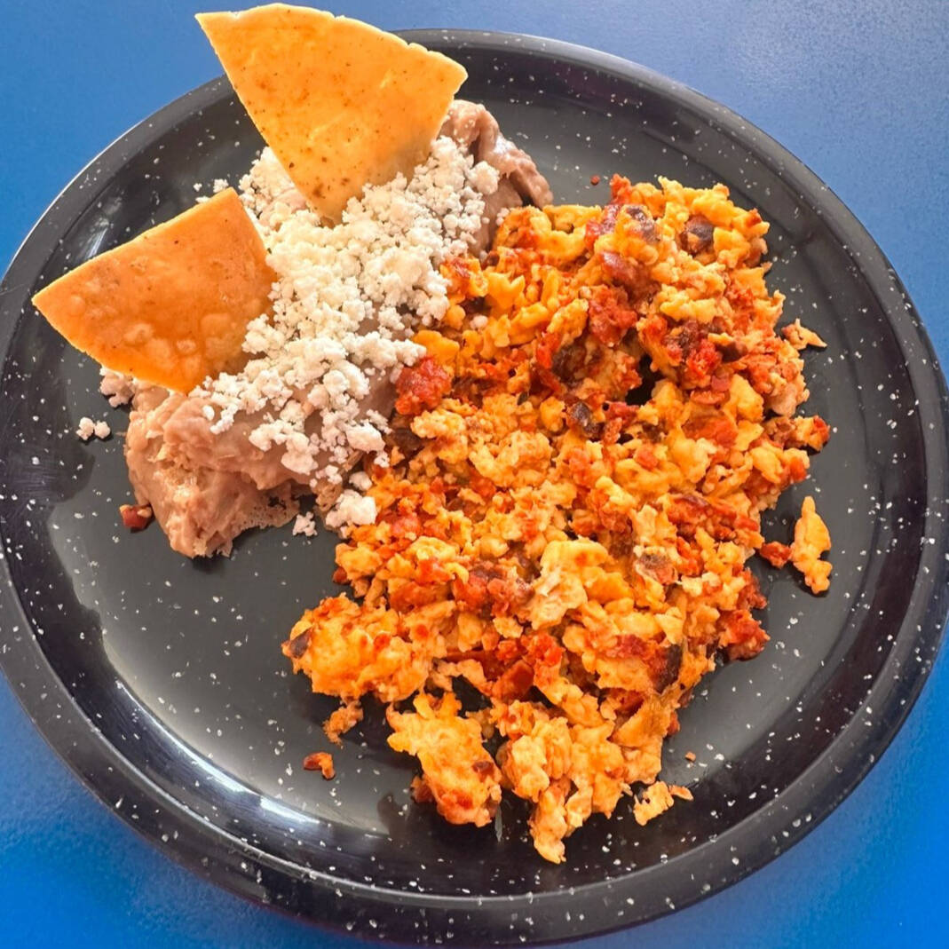 Elige entre chilaquiles verdes o rojos. Servidos con crema, queso, cebolla y acompañados con frijoles.