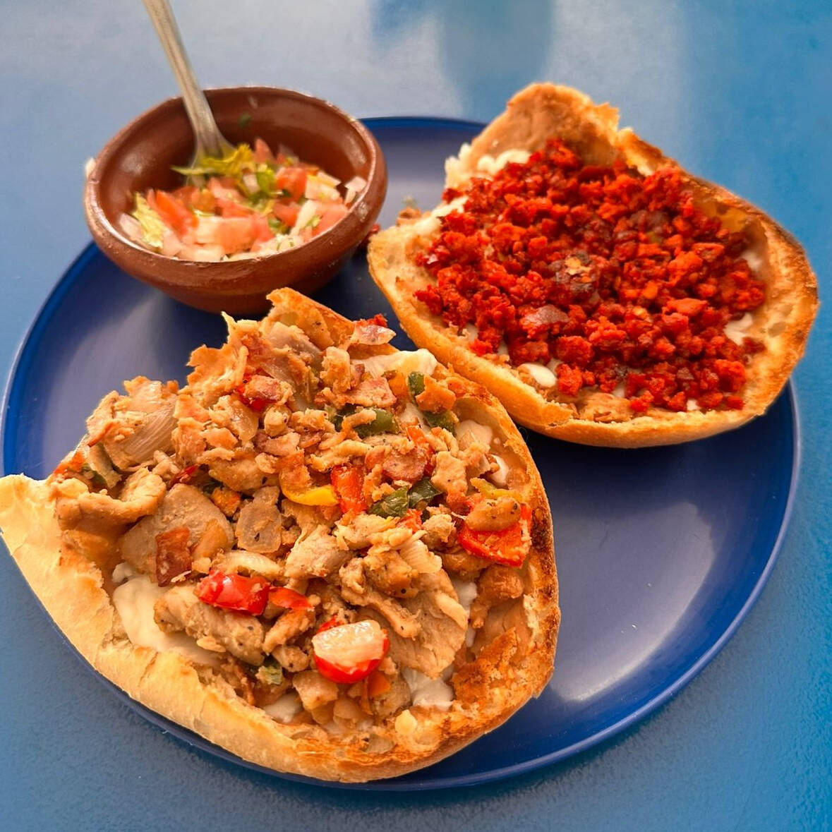 Lleva aderezos, jitomate, lechuga, cebolla, aguacate y chile.
