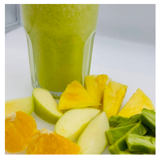 Manzana, piña, naranja, nopal, apio y matcha.