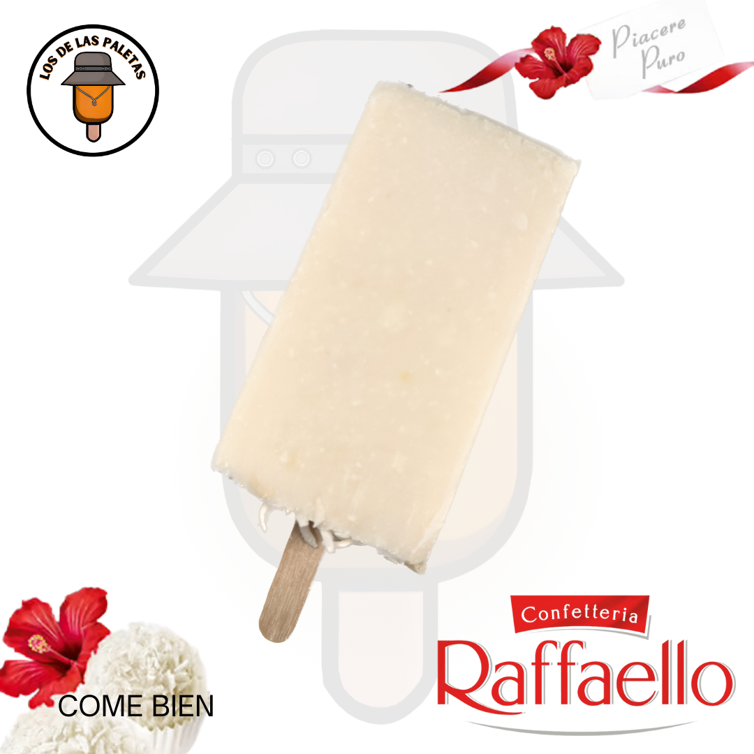 Nuestra paleta de hielo de Raffaello es el postre helado perfecto para satisfacer tus antojos de chocolate. Hecha con auténticos Chocorroles. Con su deliciosa combinación de texturas y su rico sabor, esta paleta es una verdadera delicia para los amantes del chocolate. Prueba nuestra paleta de hielo de Chocorrol y siente cómo se derrite en tu boca con cada bocado. ¡No te arrepentirás!"