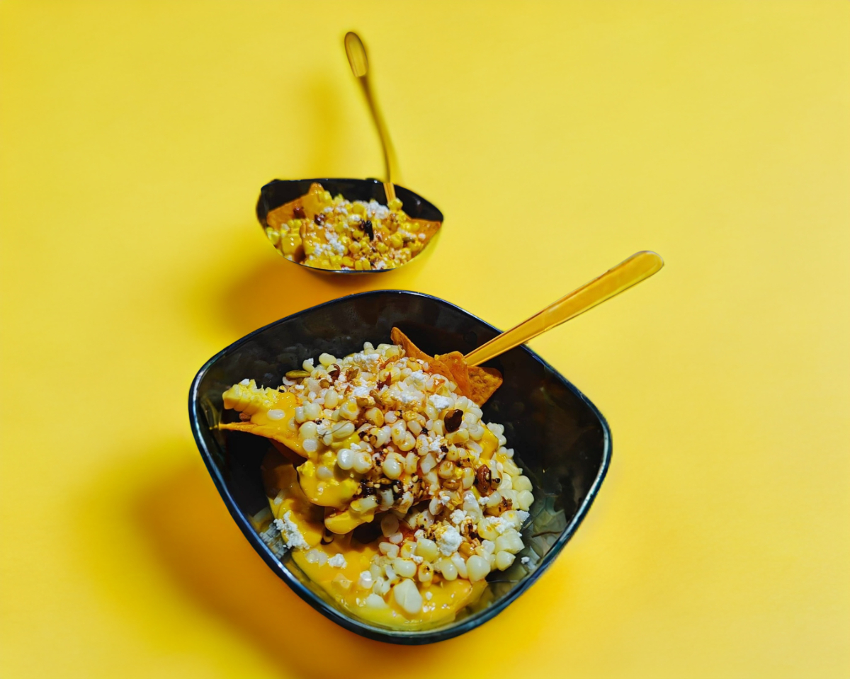 Elige y/o mezcla elote amarillo, blanco, mayonesa y queso