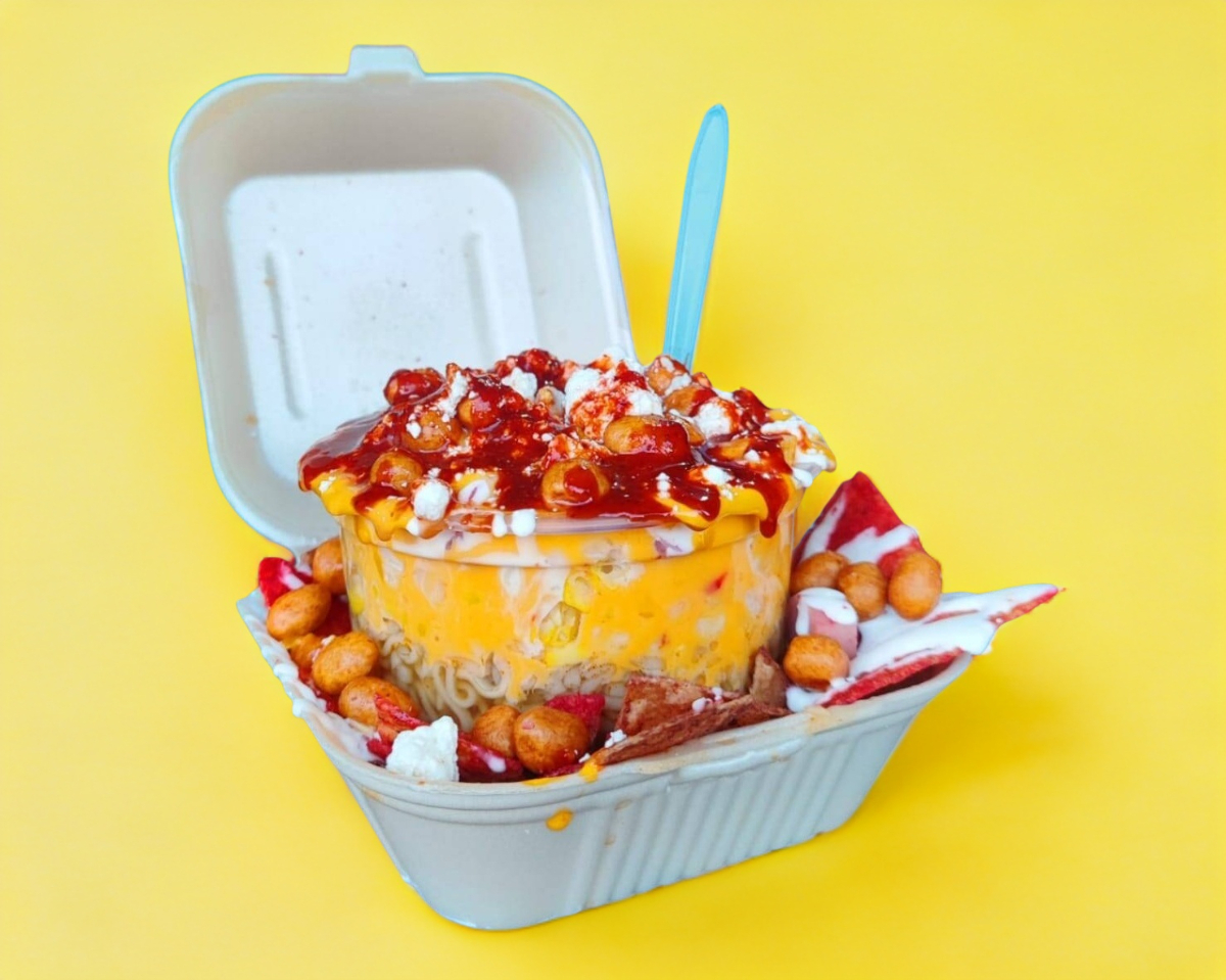 Maruchan, Elote, Salchicha, Queso Amarillo, Cacahuate, Crema y queso rallado