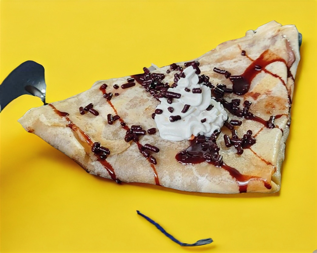 crepa de Nutella fresa decorada con Hershis de chocolate y chispitas de chocolate