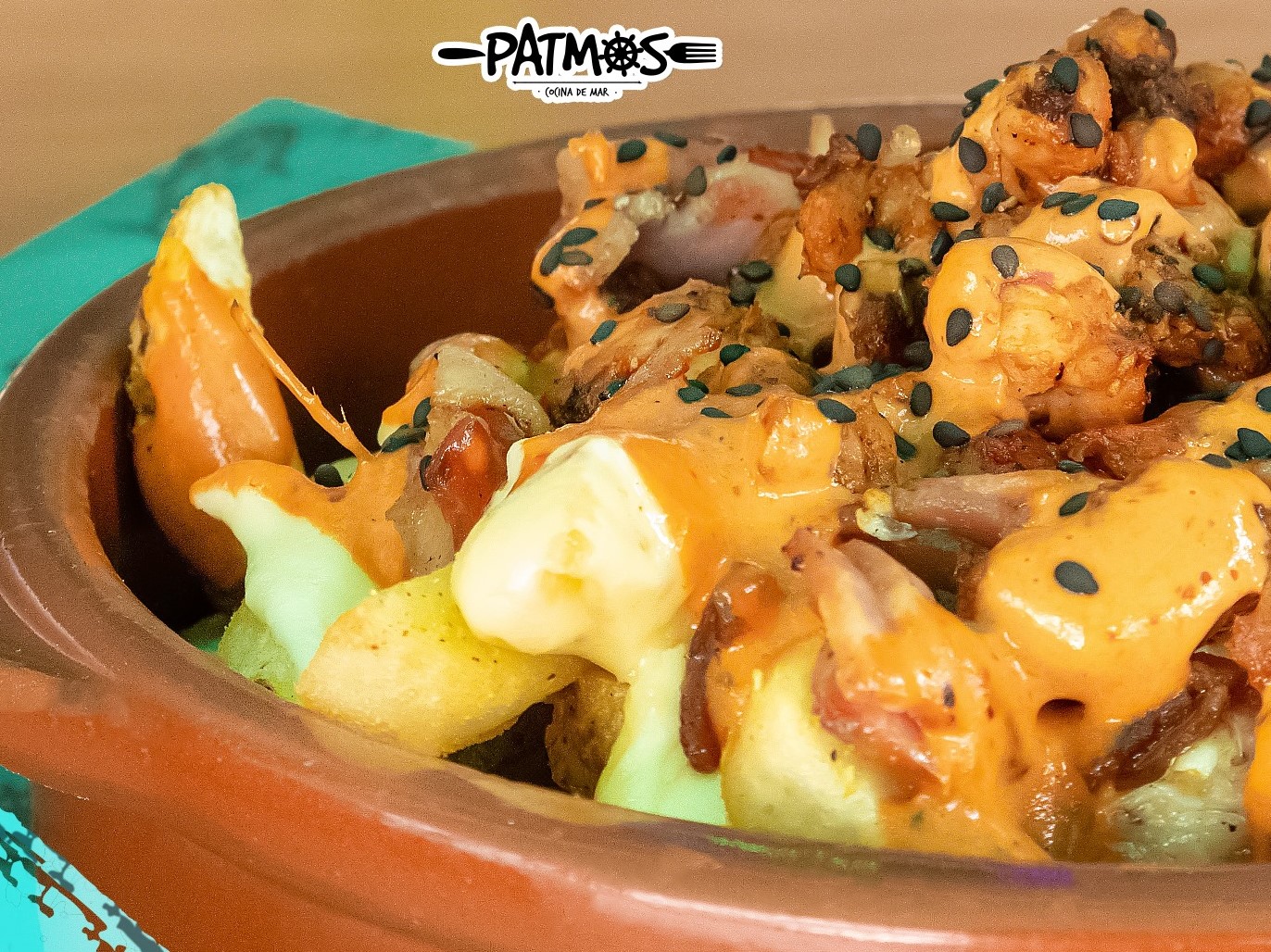Papas de gajo con camarones crunch patmos