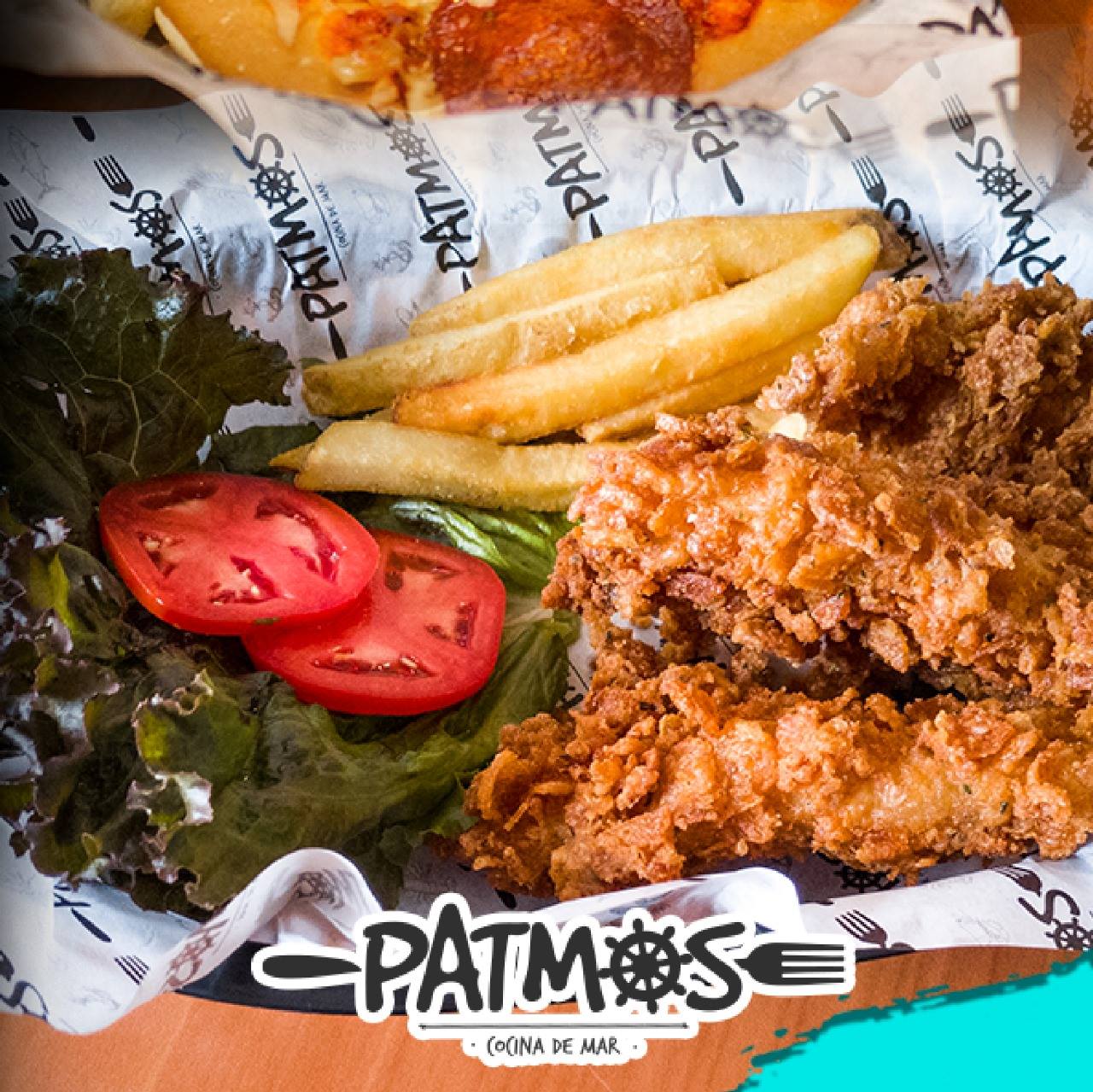 Papas de gajo con tiritas de pescado crunch patmos