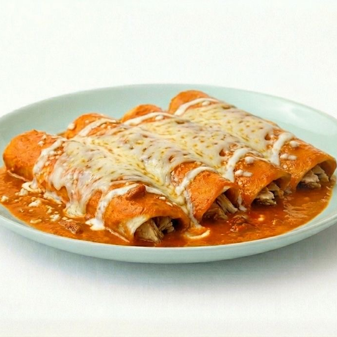 Bañadas en una deliciosa salsa roja, rellenas de pollo, cubiertas con queso y crema.