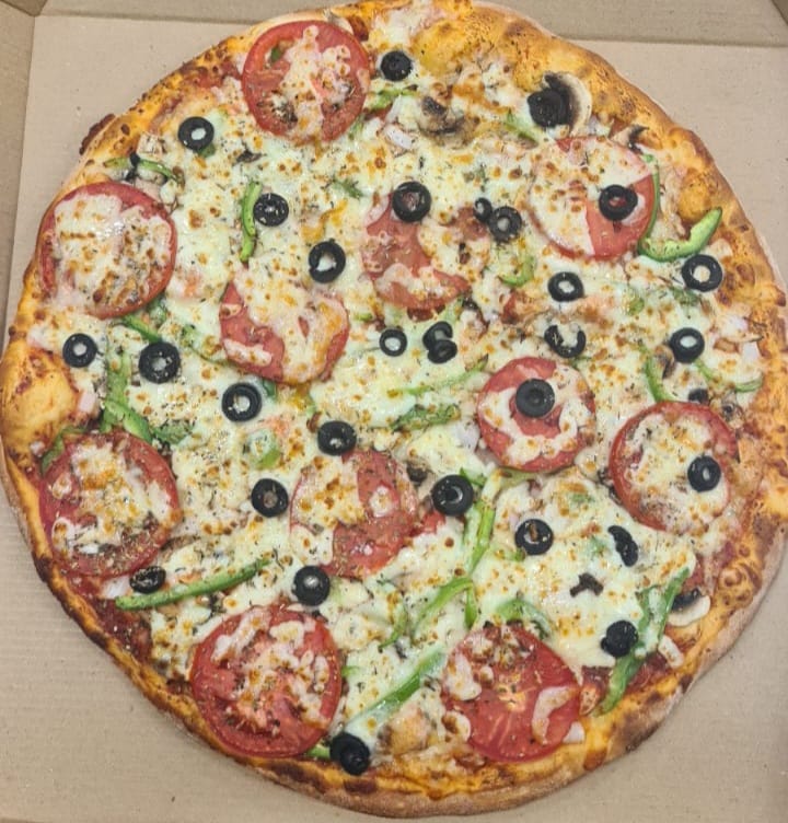 Jitomate, champiñón, cebolla, aceituna negra y pimiento sazonada con especies italianas