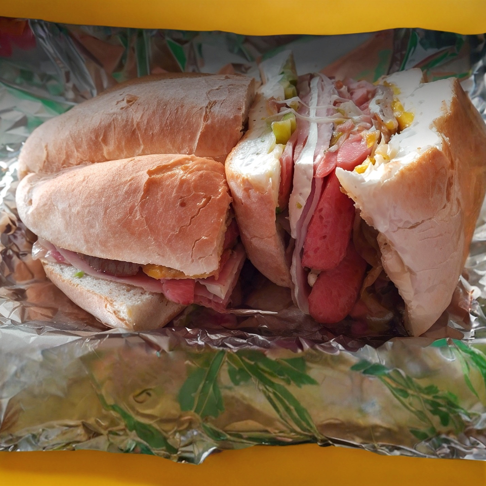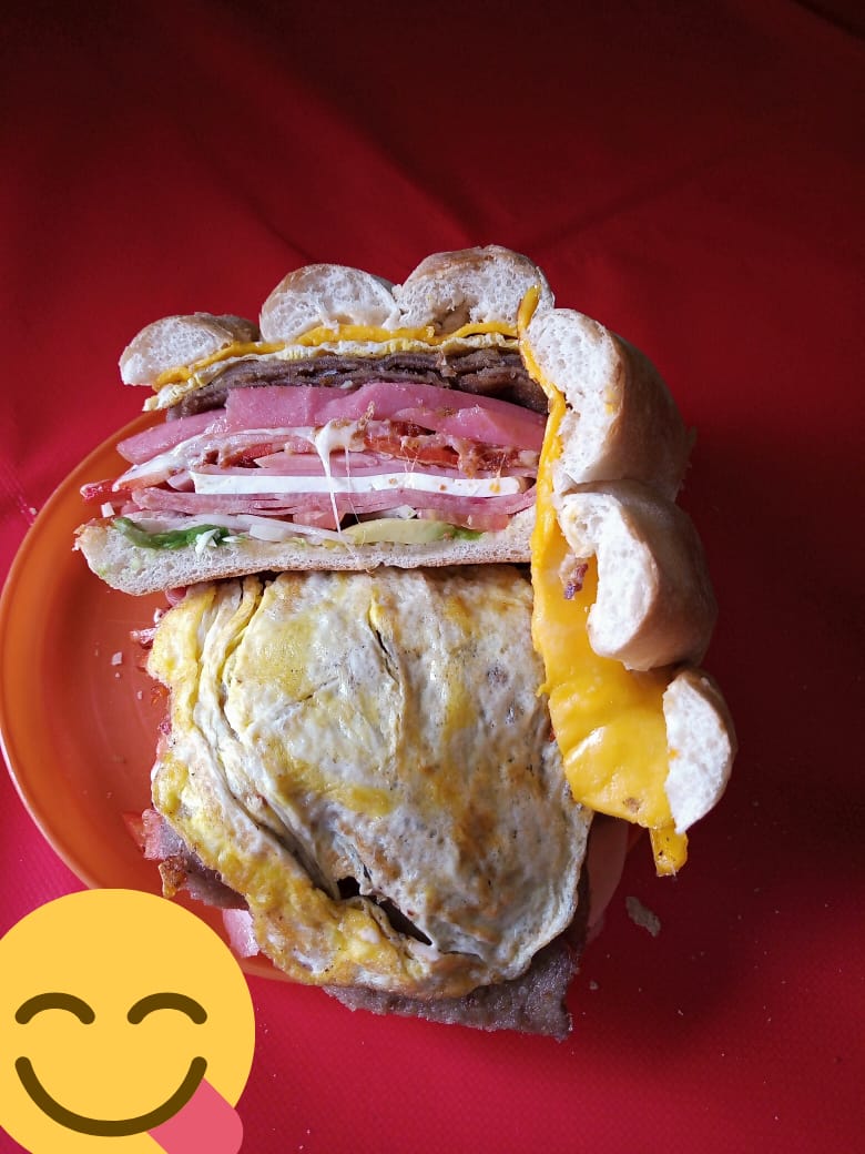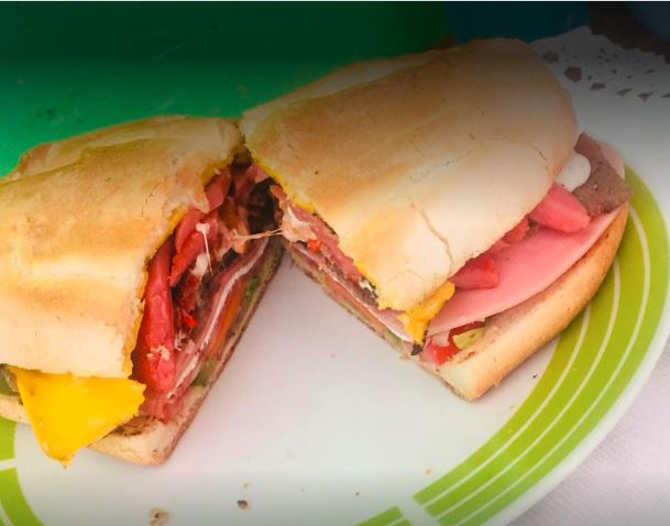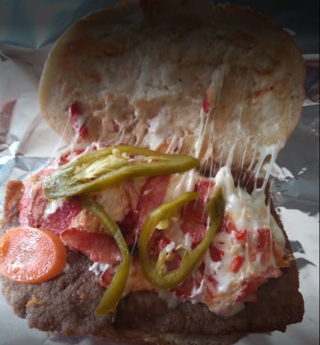 Pimiento, cebolla, piña, chorizo, milanesa y queso.