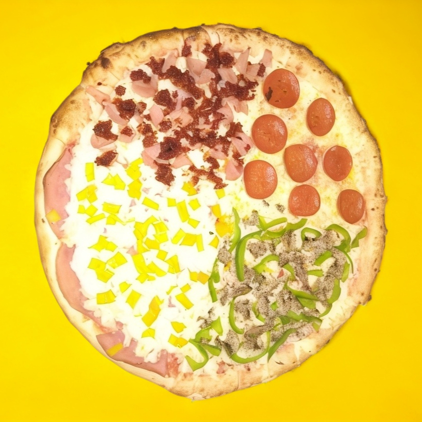 Pizza familiar 10 rebanadas 4 ingredientes
