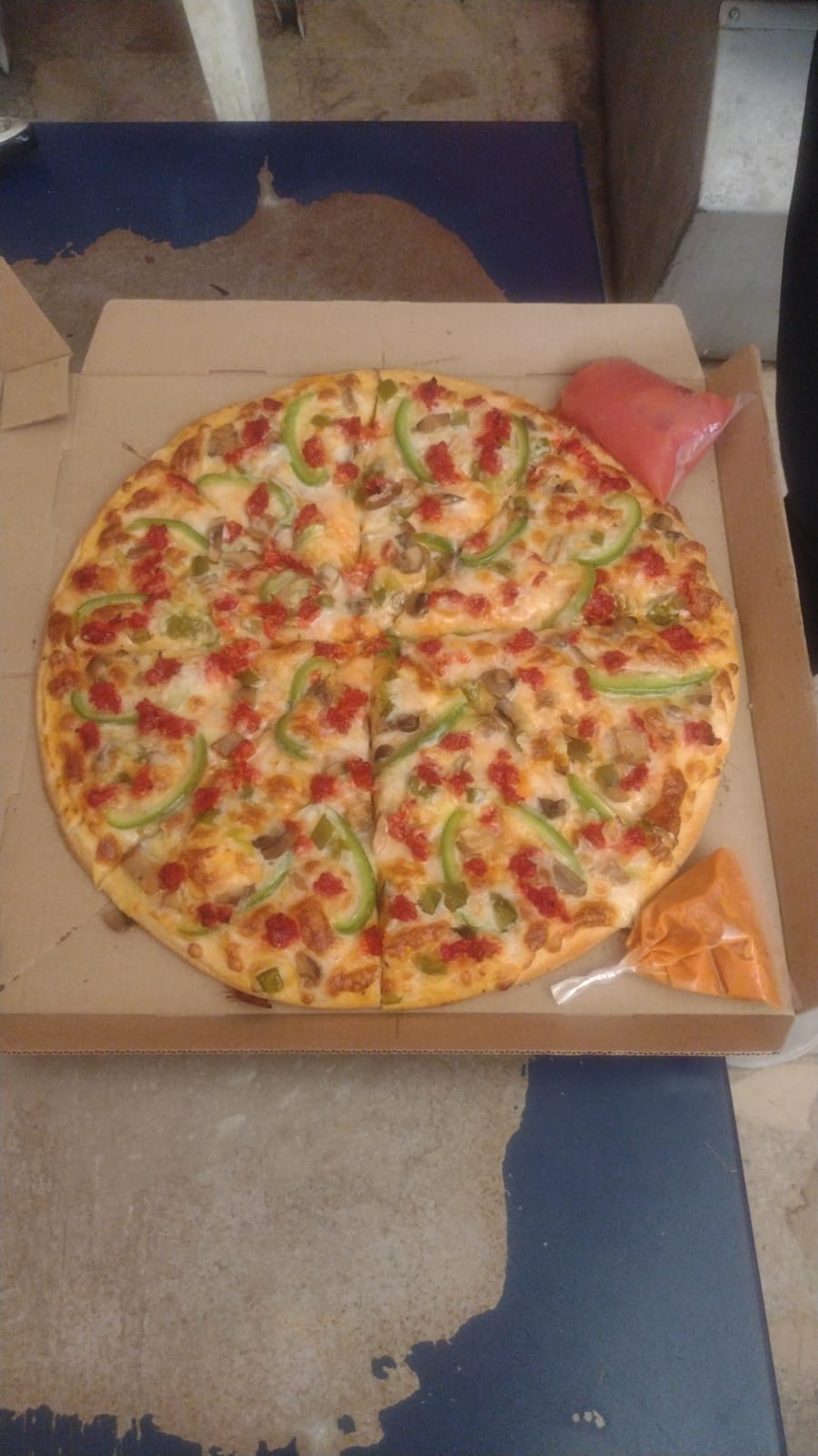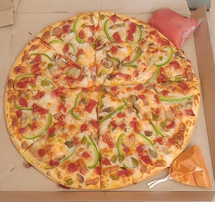 Pimiento, jalapeño, champiñones, chorizo.