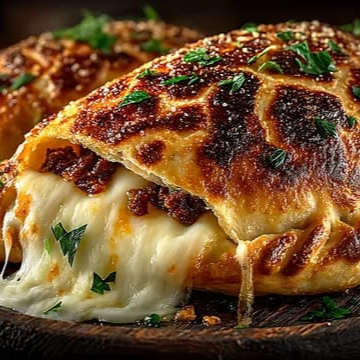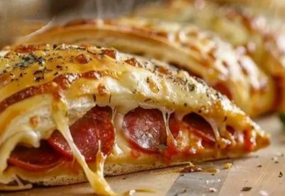 Delicioso pan horneado relleno de queso, salsa pomodoro y pepperoni