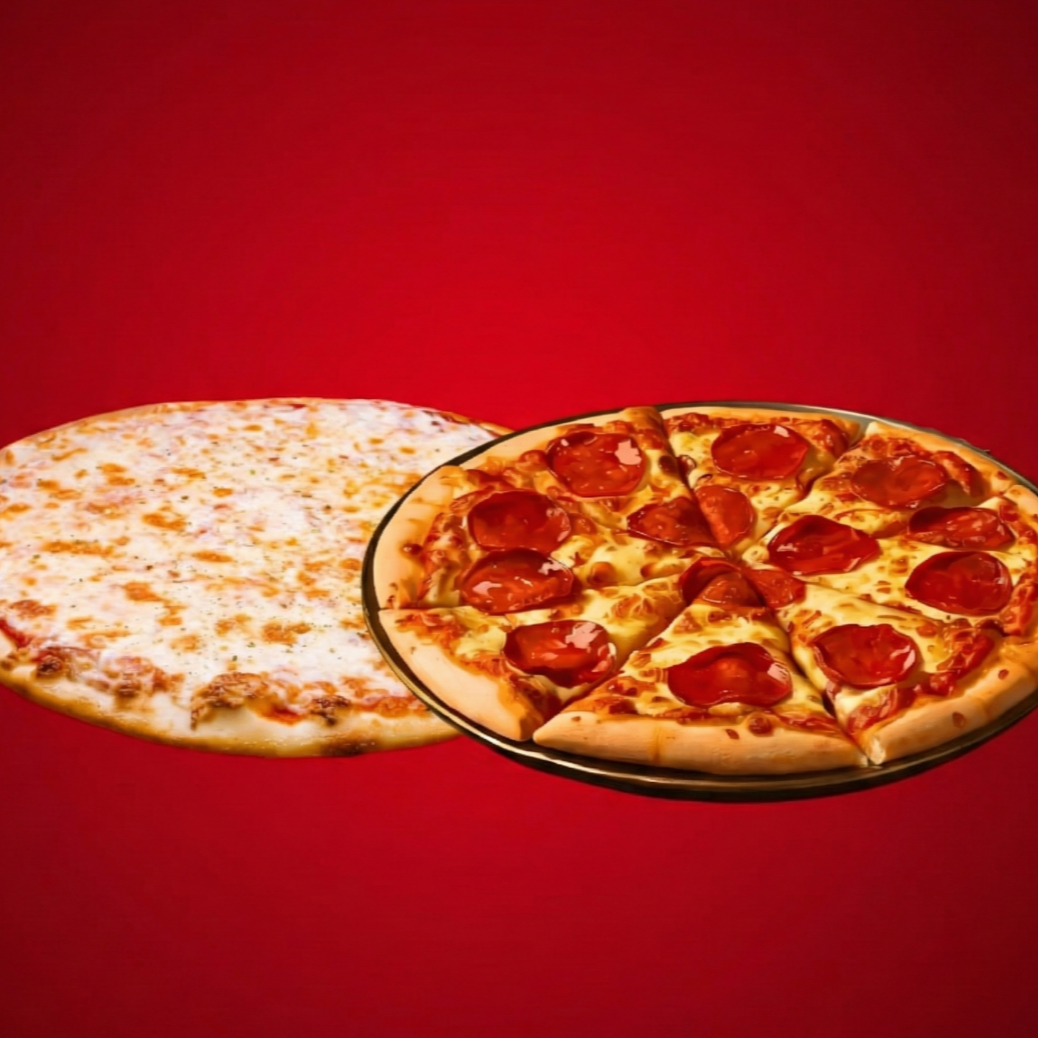 Dos deliciosas pizzas, combinación perfecta. Una de quesos y otra de pepperoni sin orilla rellena