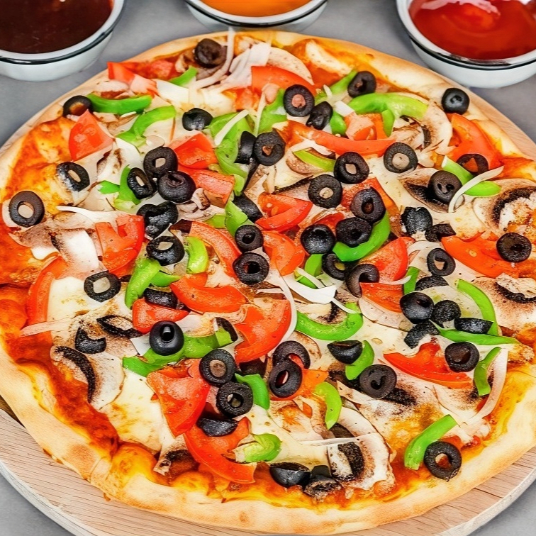 Pepperoni, champiñón, cebolla y pimiento. Contiene 8 rebanadas