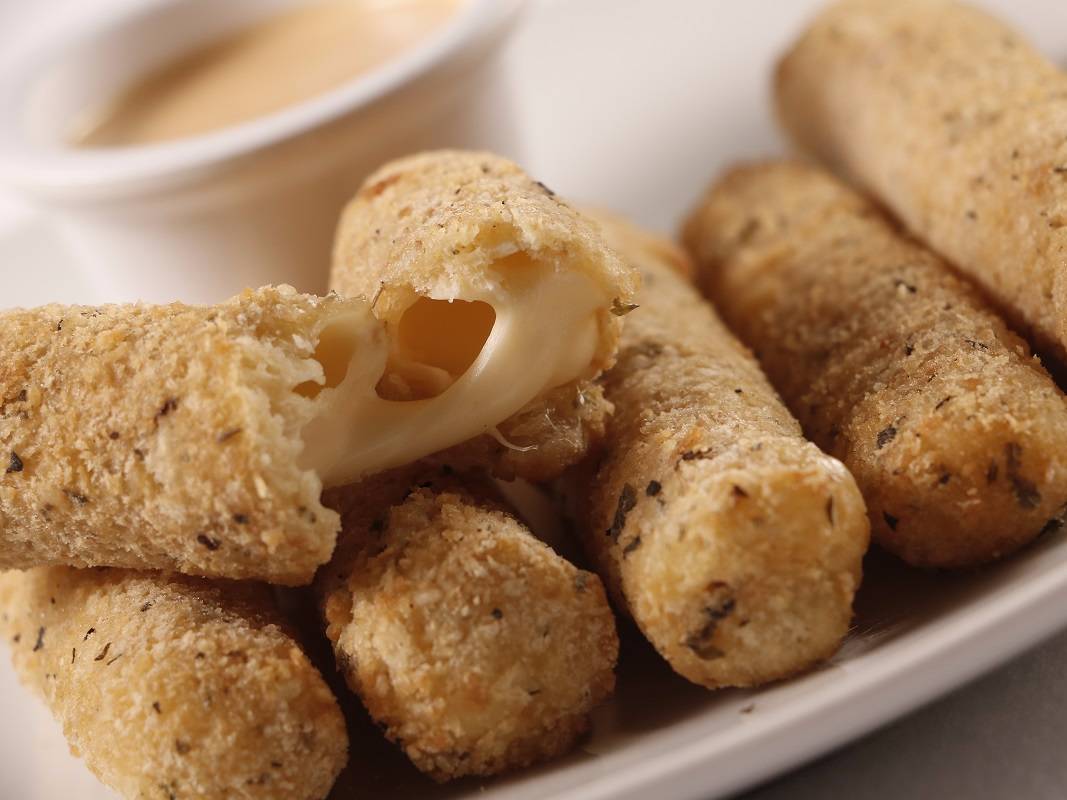 Tiritas de queso mozzarella con una crocante cubierta con un empanizado sazonado con especias, 6 piezas.