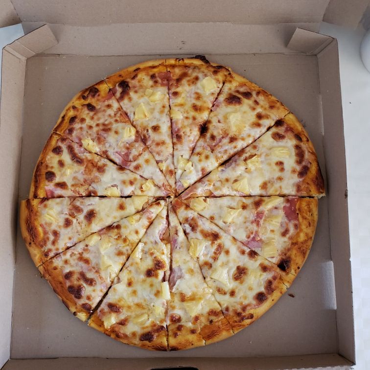 Jamón, piña, queso mozzarella y salsa de tomate. Elige el tamaño.