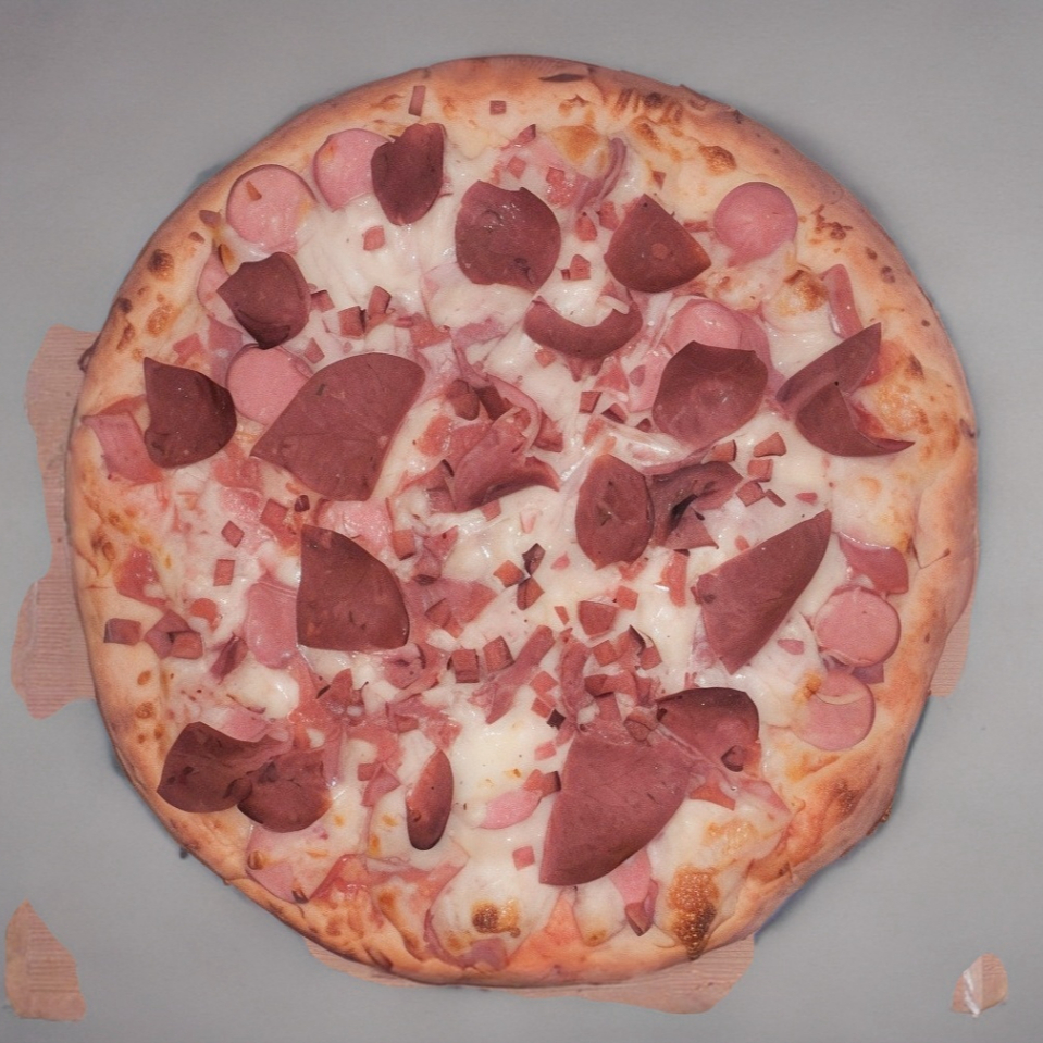 Jamón, champiñón, queso amarillo, salami.