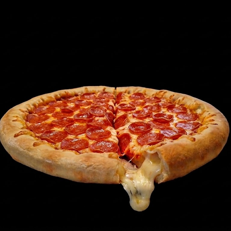 pizza de pe-peroni mediana tipo napolitana con orilla rellena de queso mozzarella