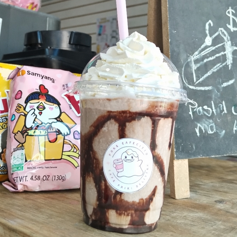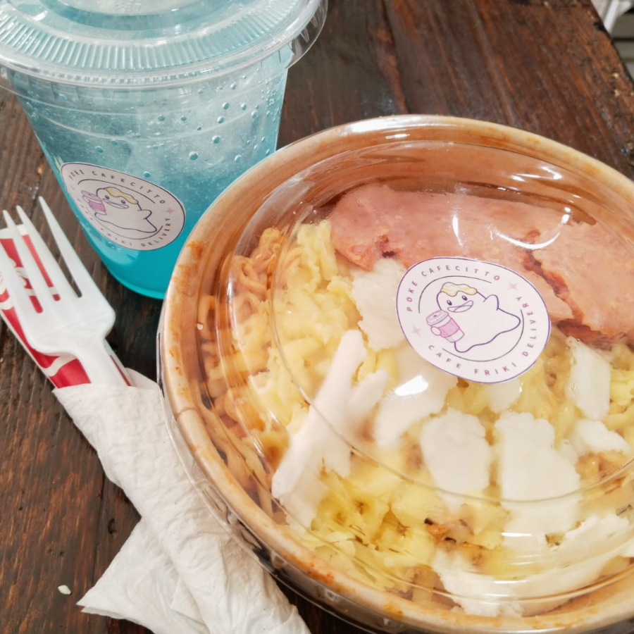 Un ramen Buldak sorpresa con salsa aparte, topping de queso manchego y una limonada de cereza