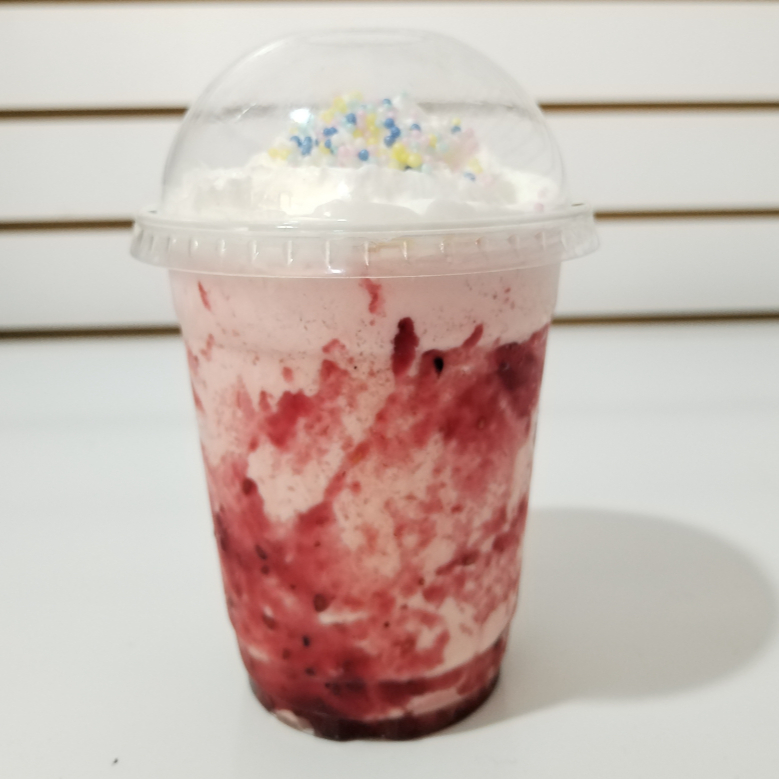 Sopa italiana con agua gasificada, jarabe y fruta del sabor seleccionado