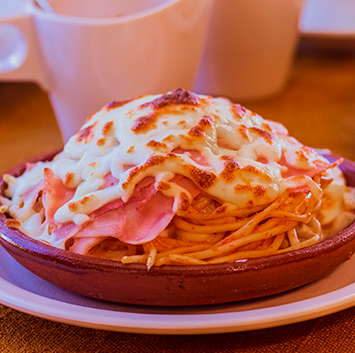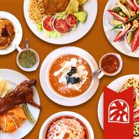 Exclusivo platillo, preparado con tortillas de harina, salsa de jitomate y relleno de picadillo, gratinado en el único y tradicional horno con crema y queso Oaxaca