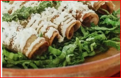 Exclusivo platillo, preparado con tortillas de harina, salsa de jitomate y relleno de pollo, gratinado en el único y tradicional horno con crema y queso Oaxaca
