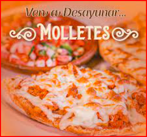 2 Molletes con jamón, frijoles refritos y queso Oaxaca gratinados