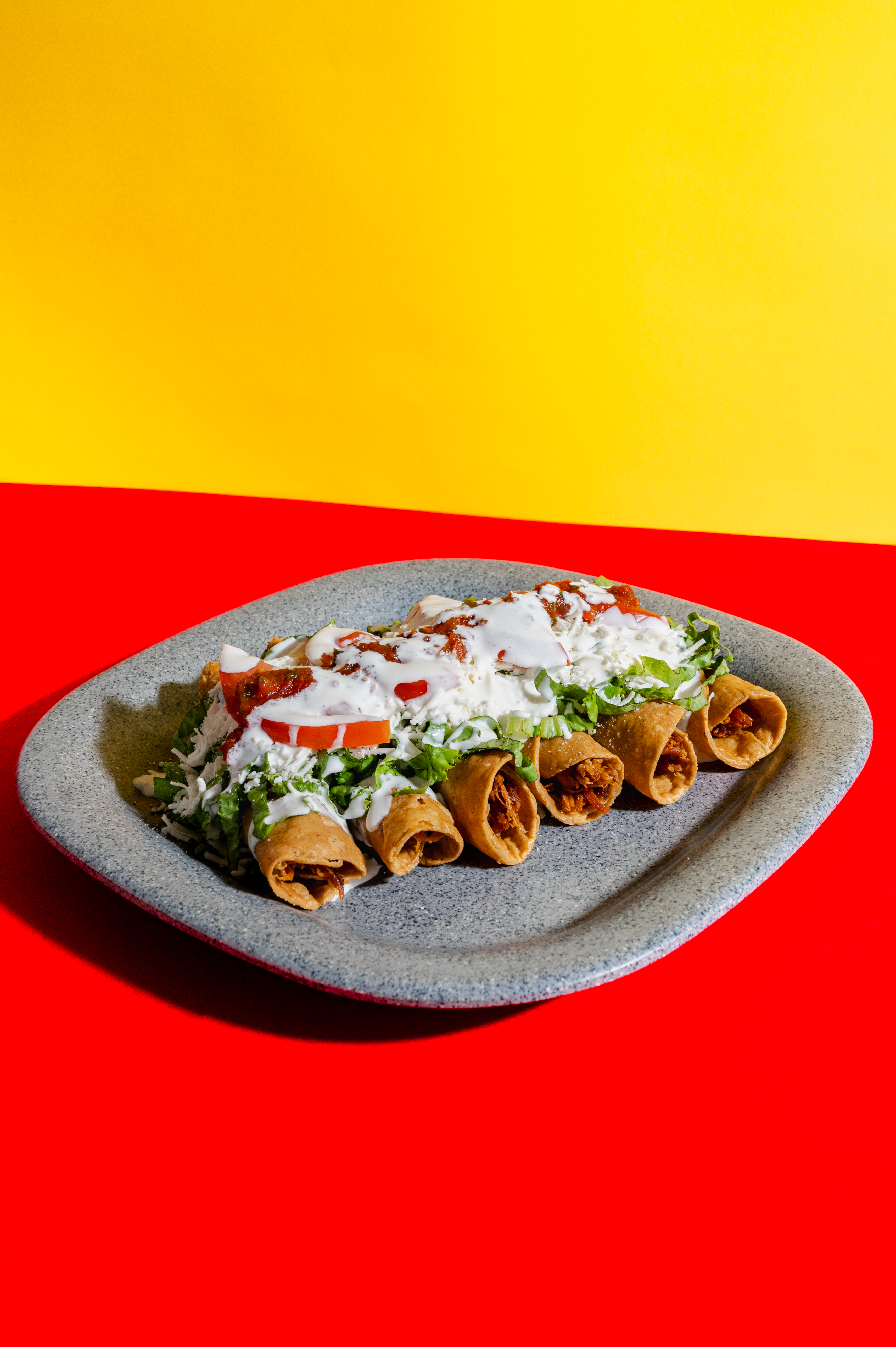 Deliciosa flauta de pollo preparadas al estilo pollo feliz, 6 piezas.