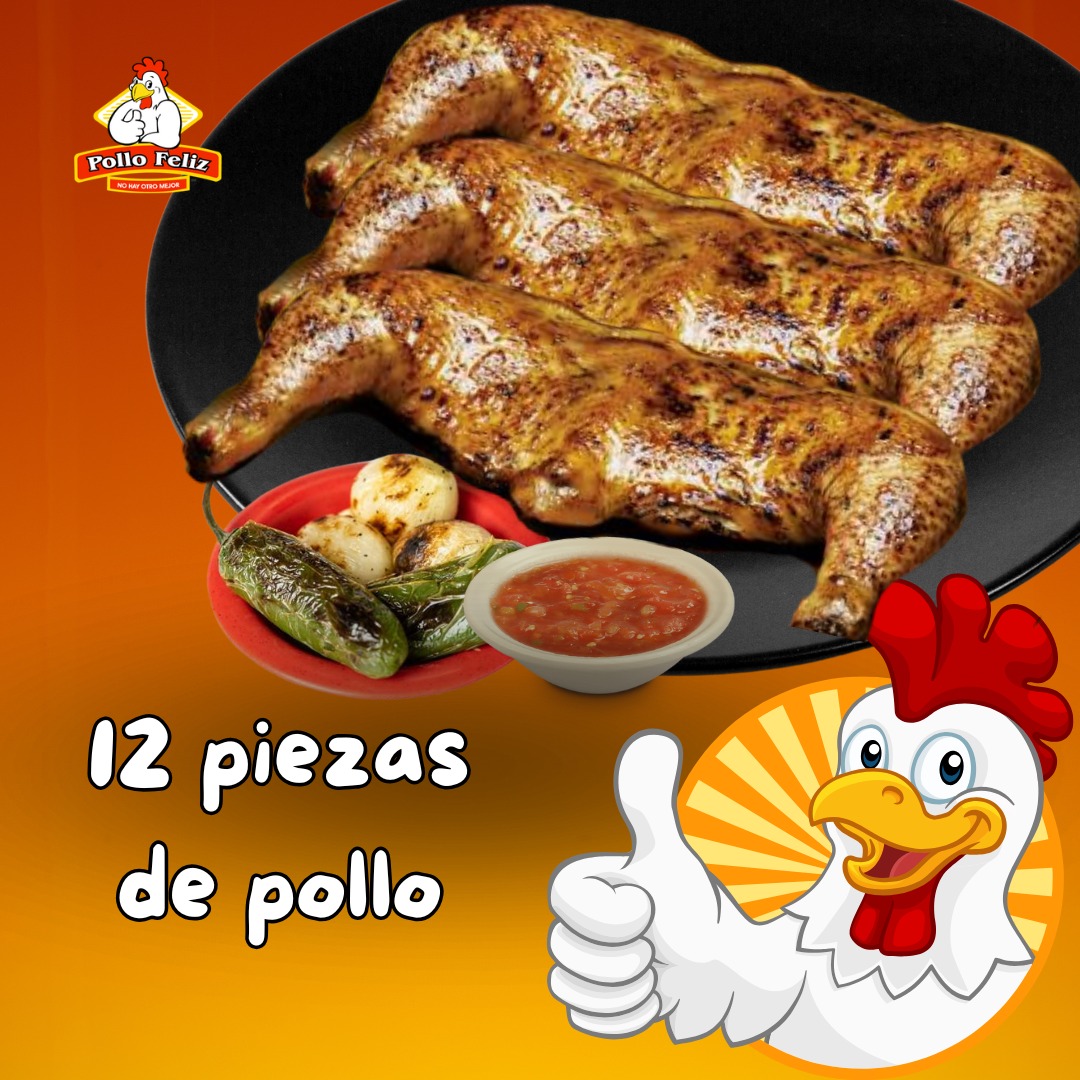 12 piezas 6 Piernas 6 muslos. Incluye salsa, tortillas hechas a mano, chiles, cebolla asada y totopos, 1 salsa, 2 tortillas, 1 chile asado.