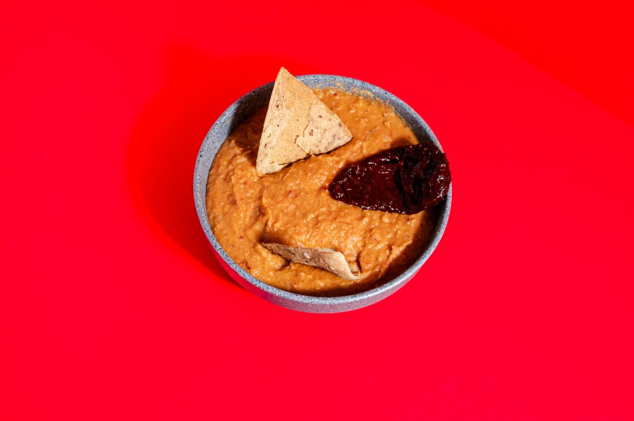 Nuestros deliciosos frijoles refritos con toque de chile chipotle de 500 gramos.