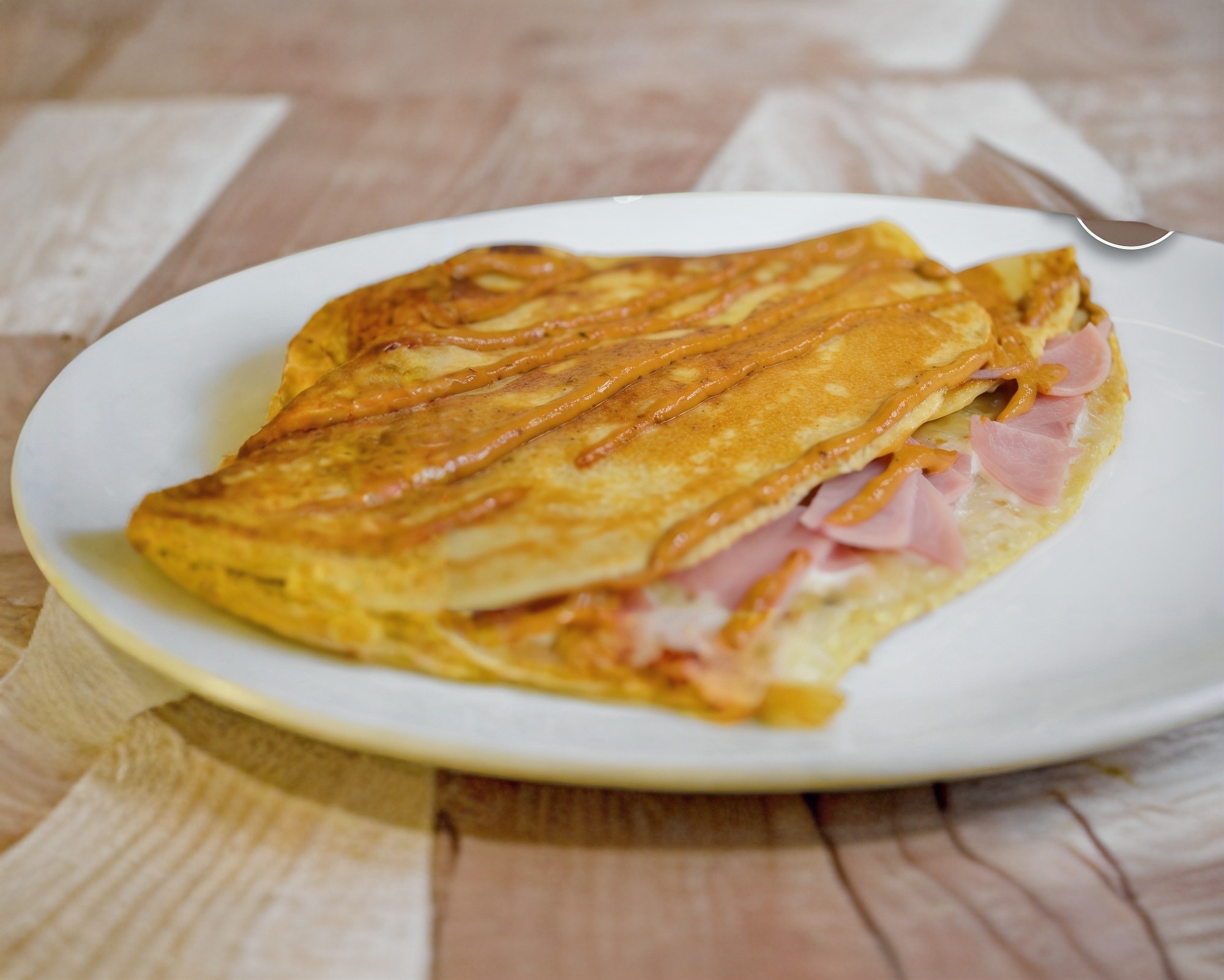 Base de salsa pomodoro, queso gouda,jamón y piña