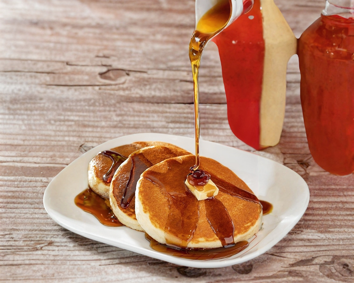 Hot cake realizado con harina de trigo con diametro de 10 cm aproximadamente , acompañado de topping, una base y jarabe de tu eleccion.