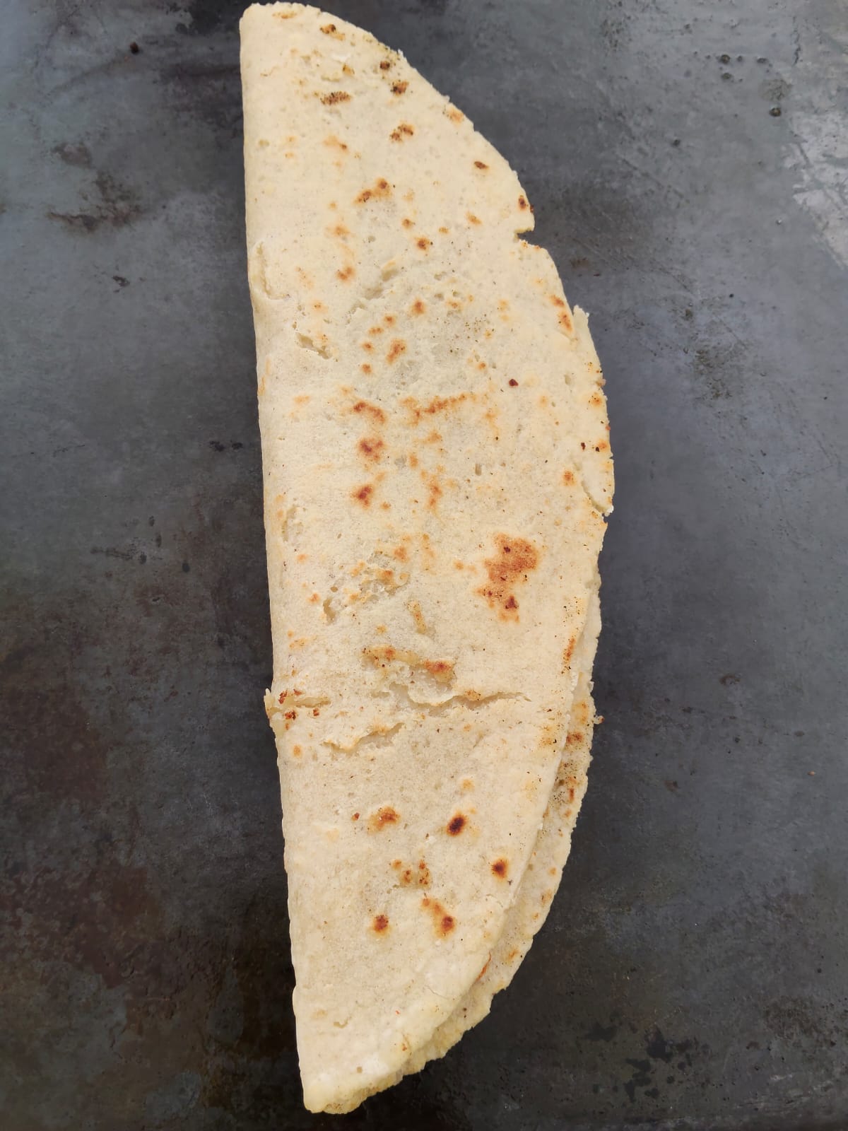Tortilla de maíz grande (25 cm) de comal rellena con queso fundido.