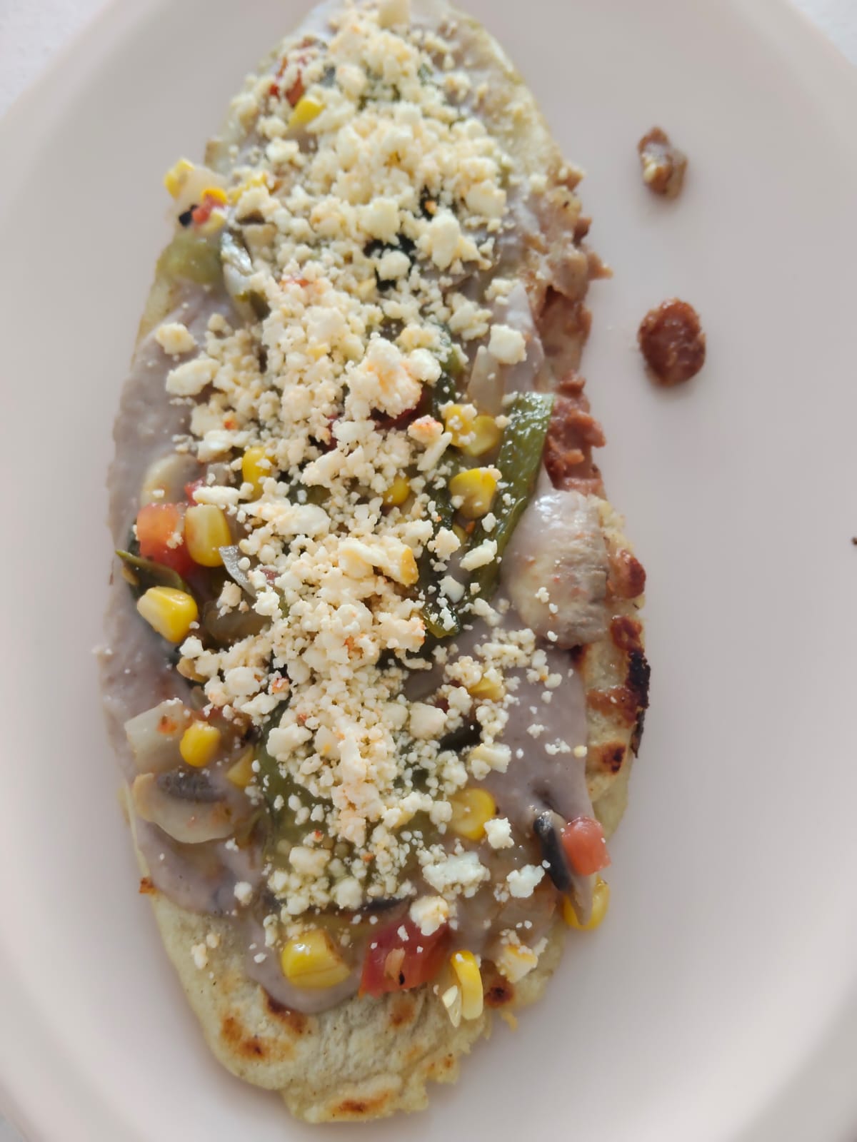 Sope de maíz con frijoles y queso.