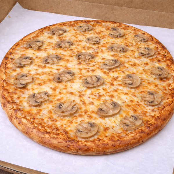 Pizza grande 35 cm con salsa pomodoro, mezcla de quesos, champiñones.