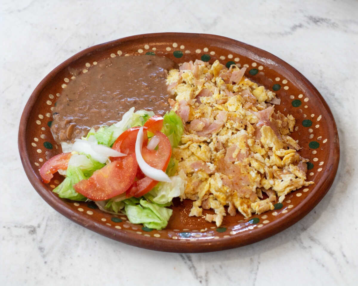 Con jamón, salchicha, chorizo a la mexicana, rancheros, divorciados, omelette, acompañados de ensalada, frijoles, tortillas y agua de sabor.