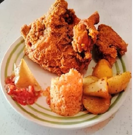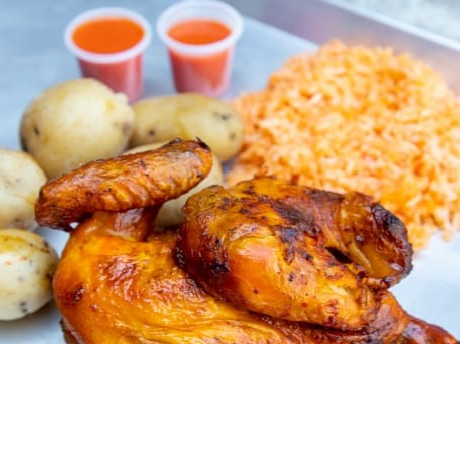 Orden de Arroz*1 + Orden de Papitas*1 + Vasito de Salsa Roja*1 + Medio Pollo Rostizado*1