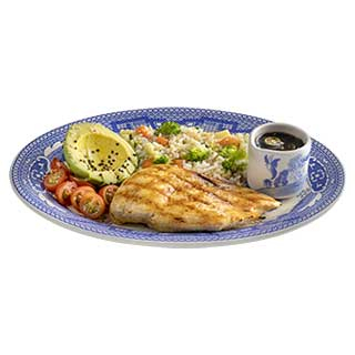 Filete de Pescado a la plancha o al Mojo de ajo o al ajillo (200 g). Con arroz blanco y ensalada de la casa.