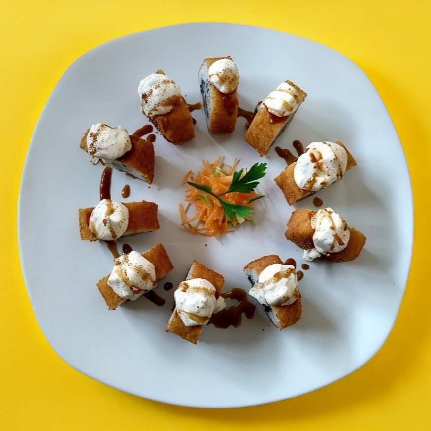 2 Rollos de 10 Pzs c/u, con Queso Filadelfia, queso manchego y camarón.