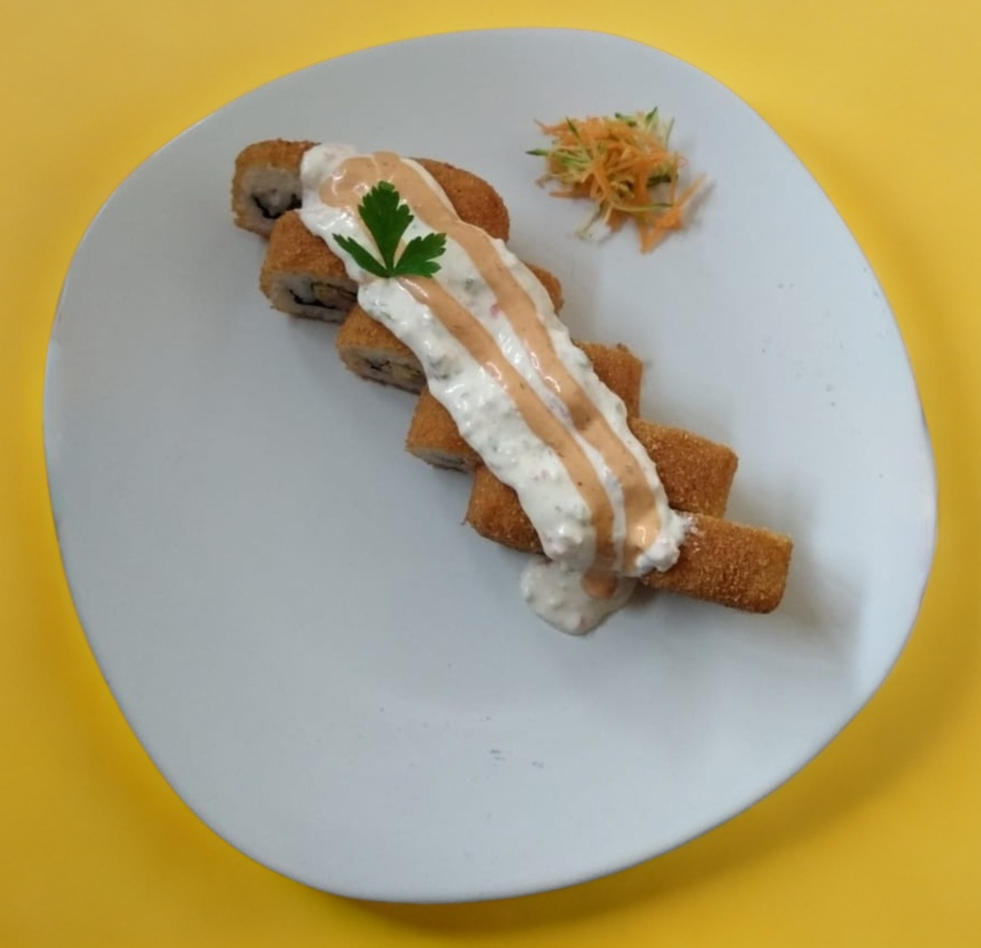 3 Makis de pollo, manchego y philadelphia más 1 tocumbagua de 500 ml, (horchata, kalua o jamaica).