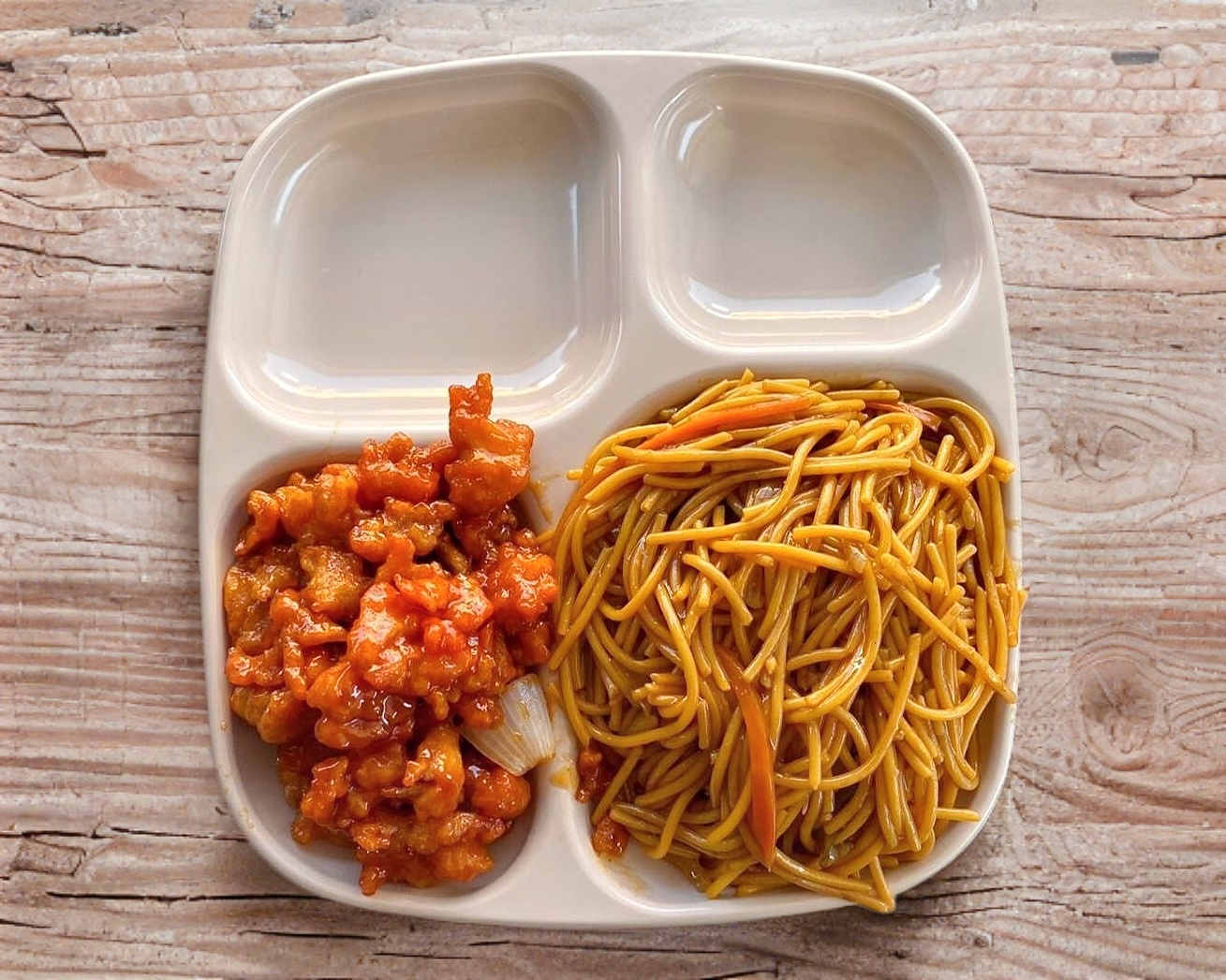 Incluye arroz o espagueti + 2 guisados e elccion + salsas agridulce, soya con picante, cubiertos y servilletas. (Porcion personal)