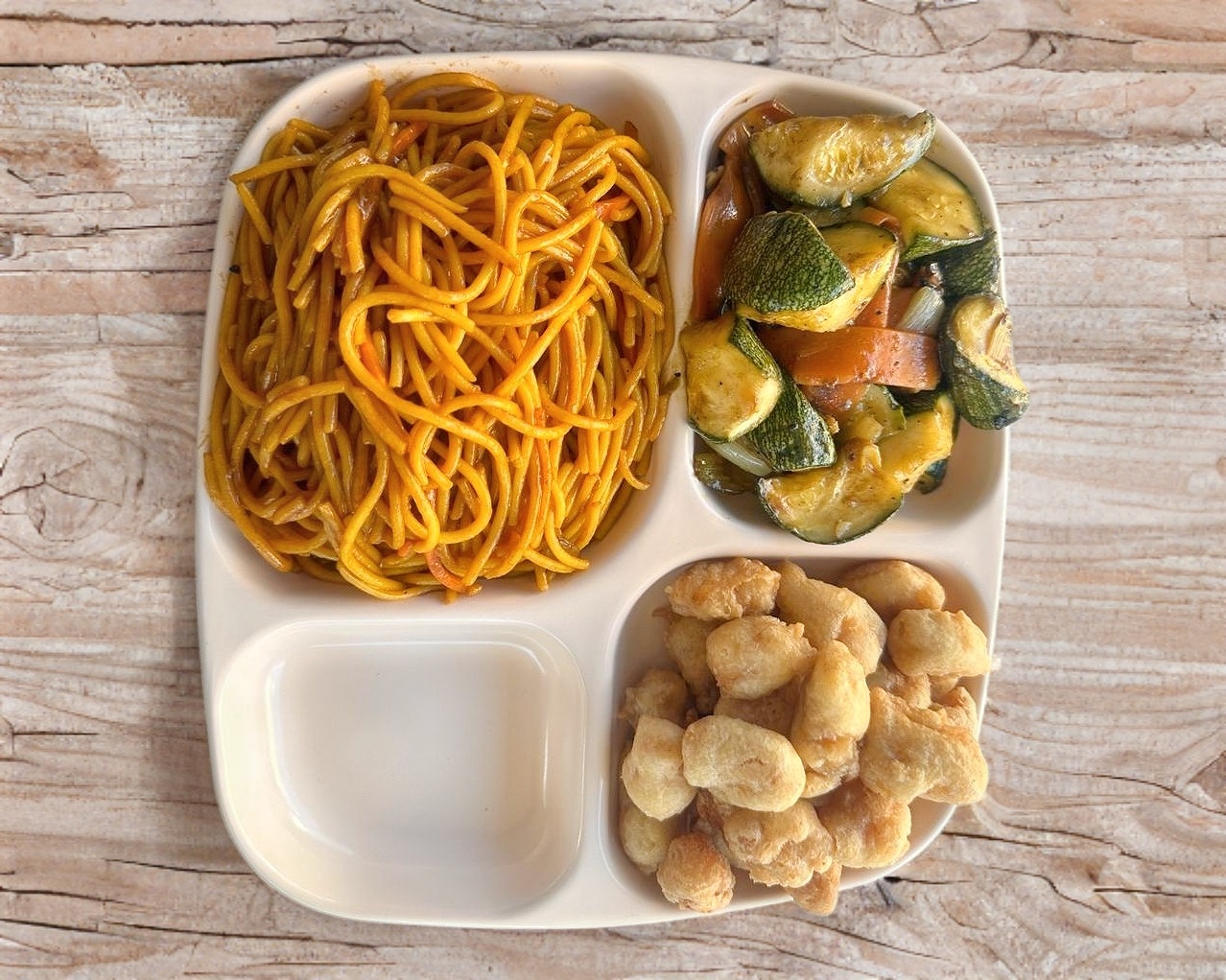 porcion individual de arroz ó espaguetti ó vegetales mixtos