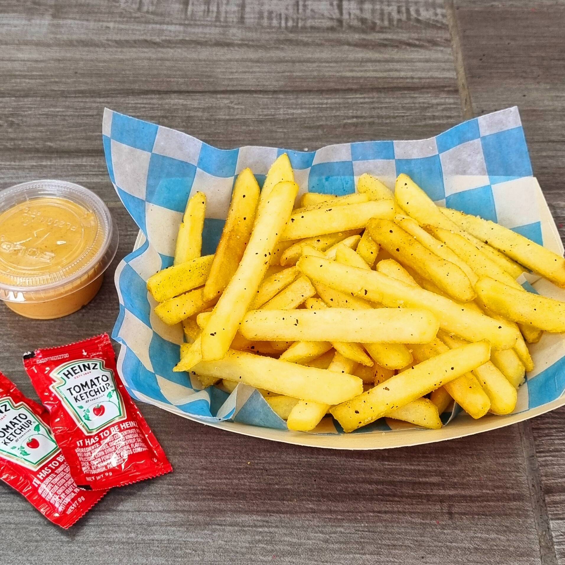 Papas con aderezo de ajo, queso parmesanony un toque de oregano
