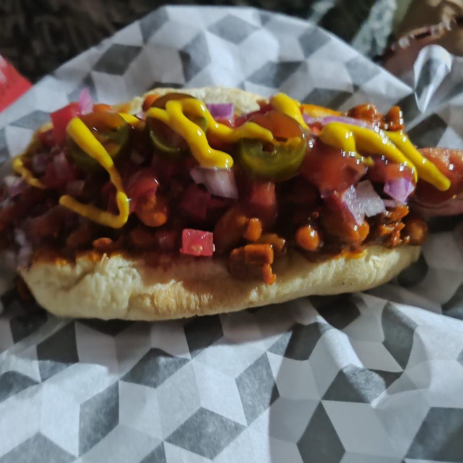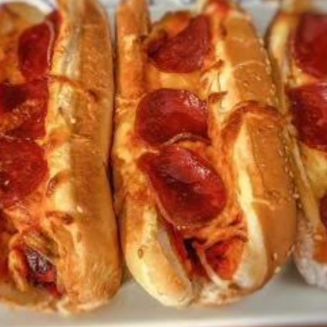 2 salchichas de pavo,pan artesanal,peperoni, cebolla, queso manchego jitomate, catsup y mostaza chile vinagre