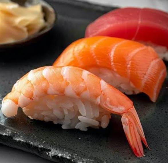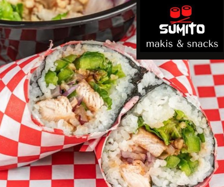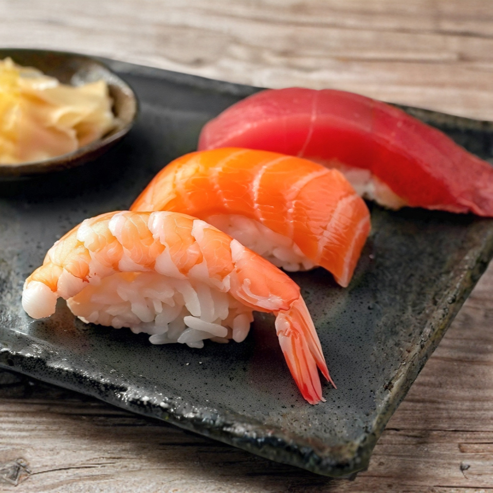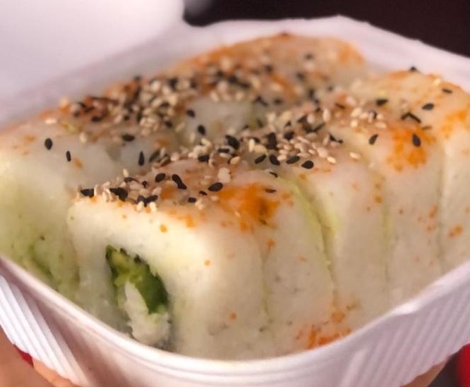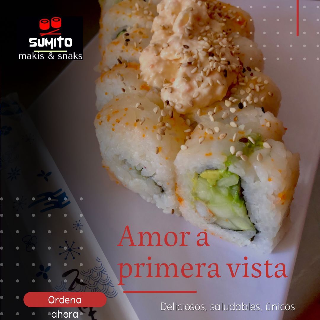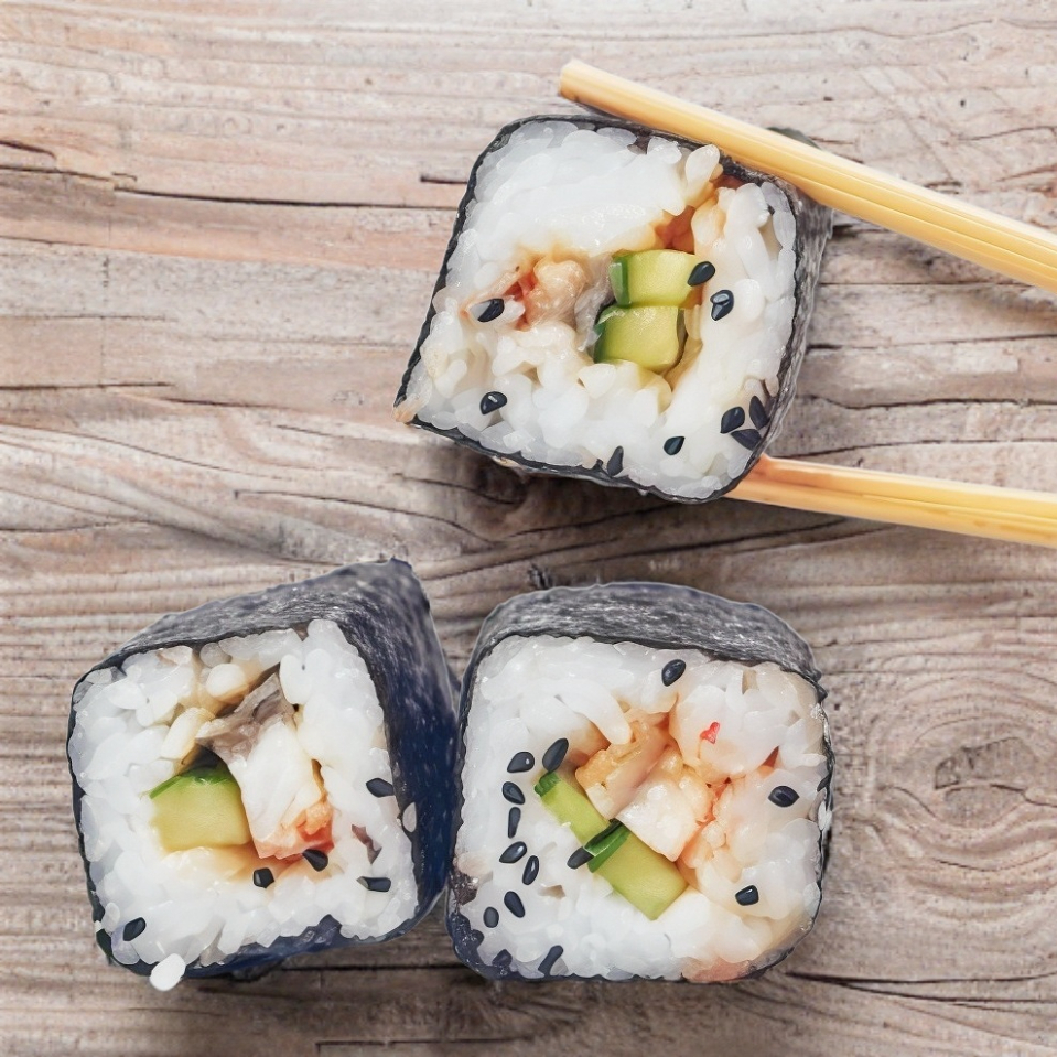 Camarón, Philadelphia, aguacate, salmón, cangrejo, doble arroz y doble alga.