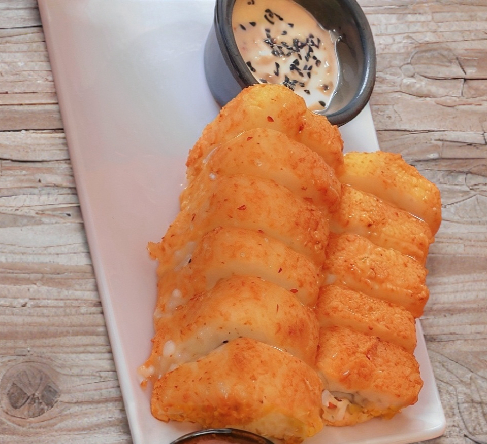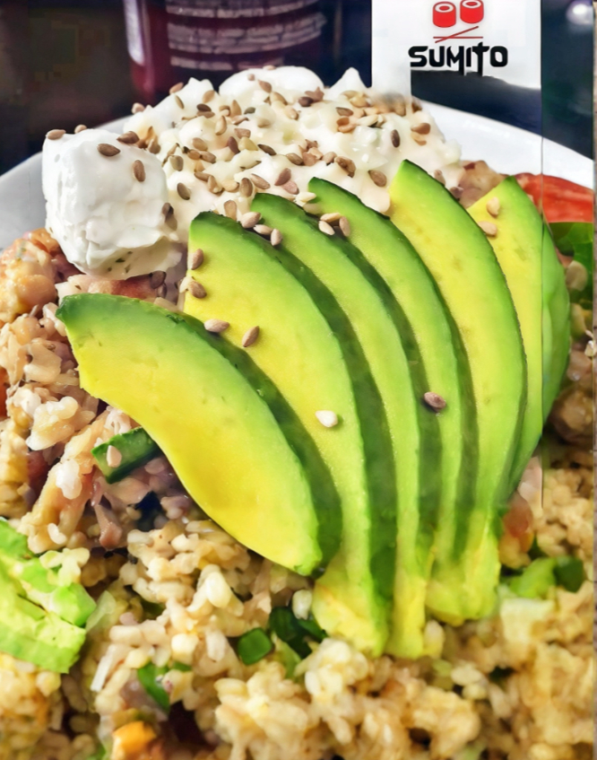 Cangrejo, Philadelphia y arroz de yakimeshi.