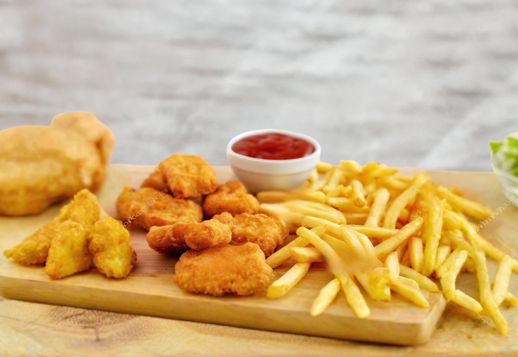 300 gr de nuggets de pollo y 100 gr de papas a la francesa
