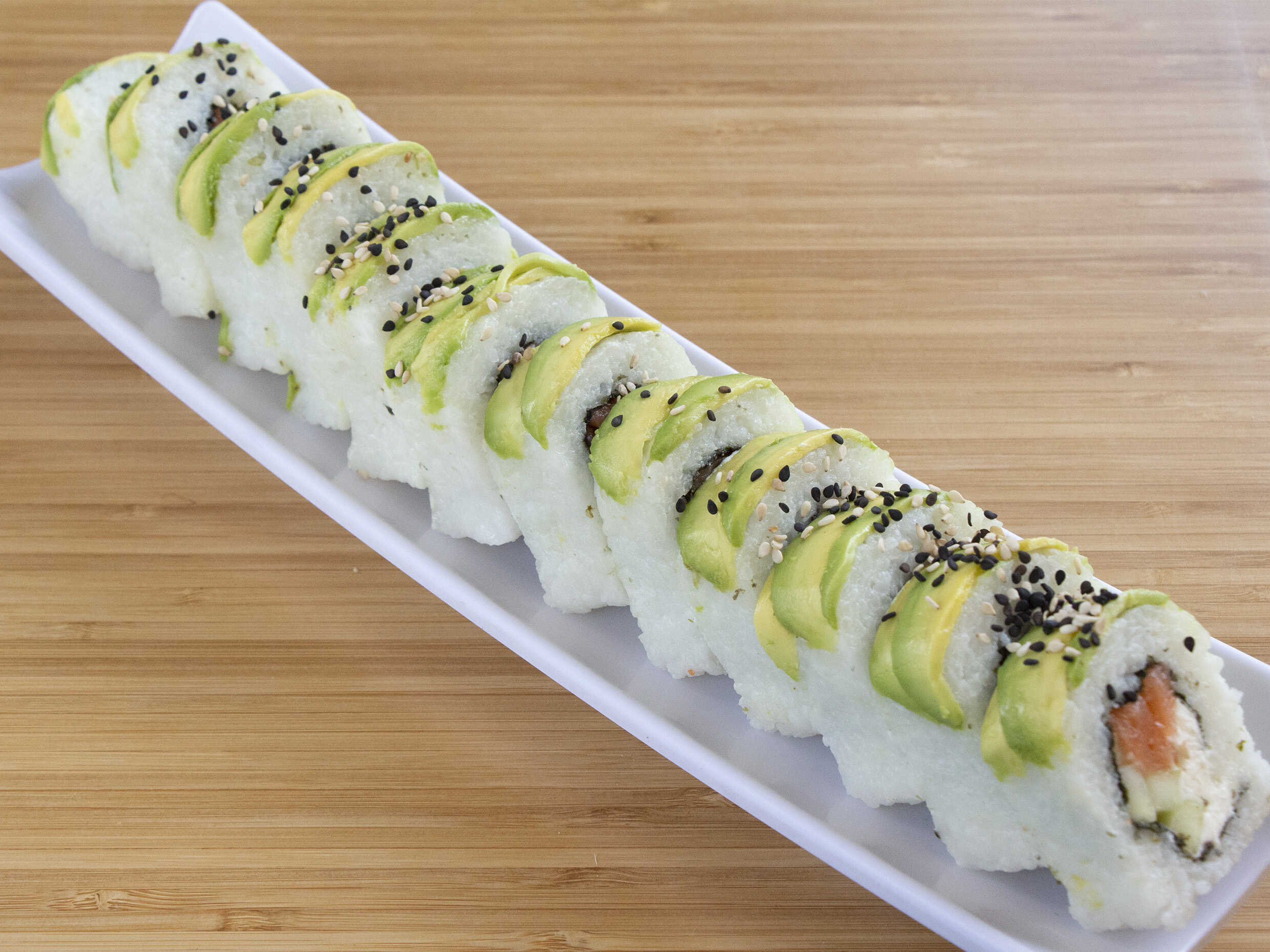 Pollo, arrachera, camarón, philadelphia, pepino por dentro y aguacate por fuera naturales.