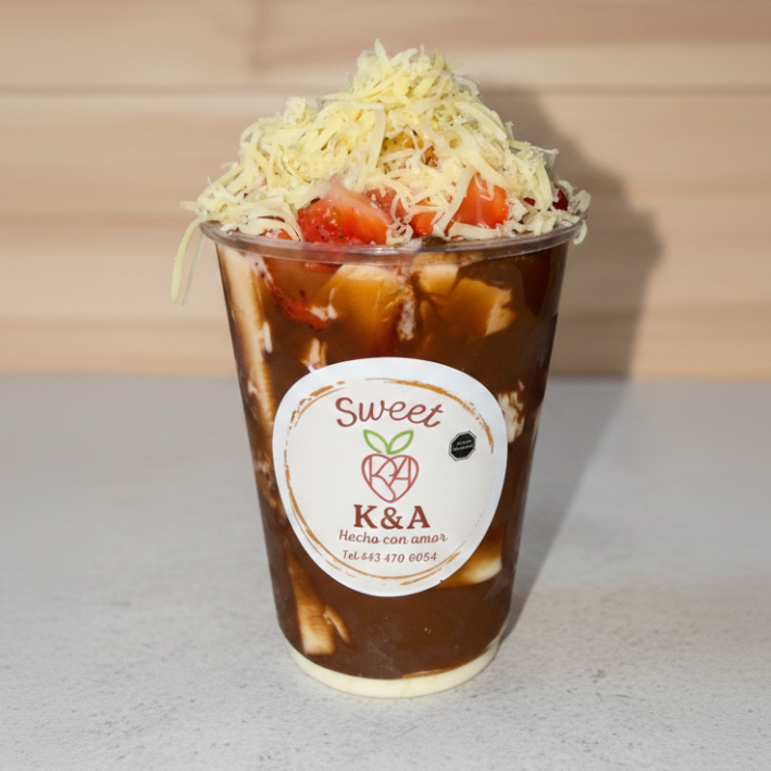 Disfruta de unas deliciosas fresas con crema acompañada de queso de bola estilo marquesa- Elige 2 topping + 2 jarabes